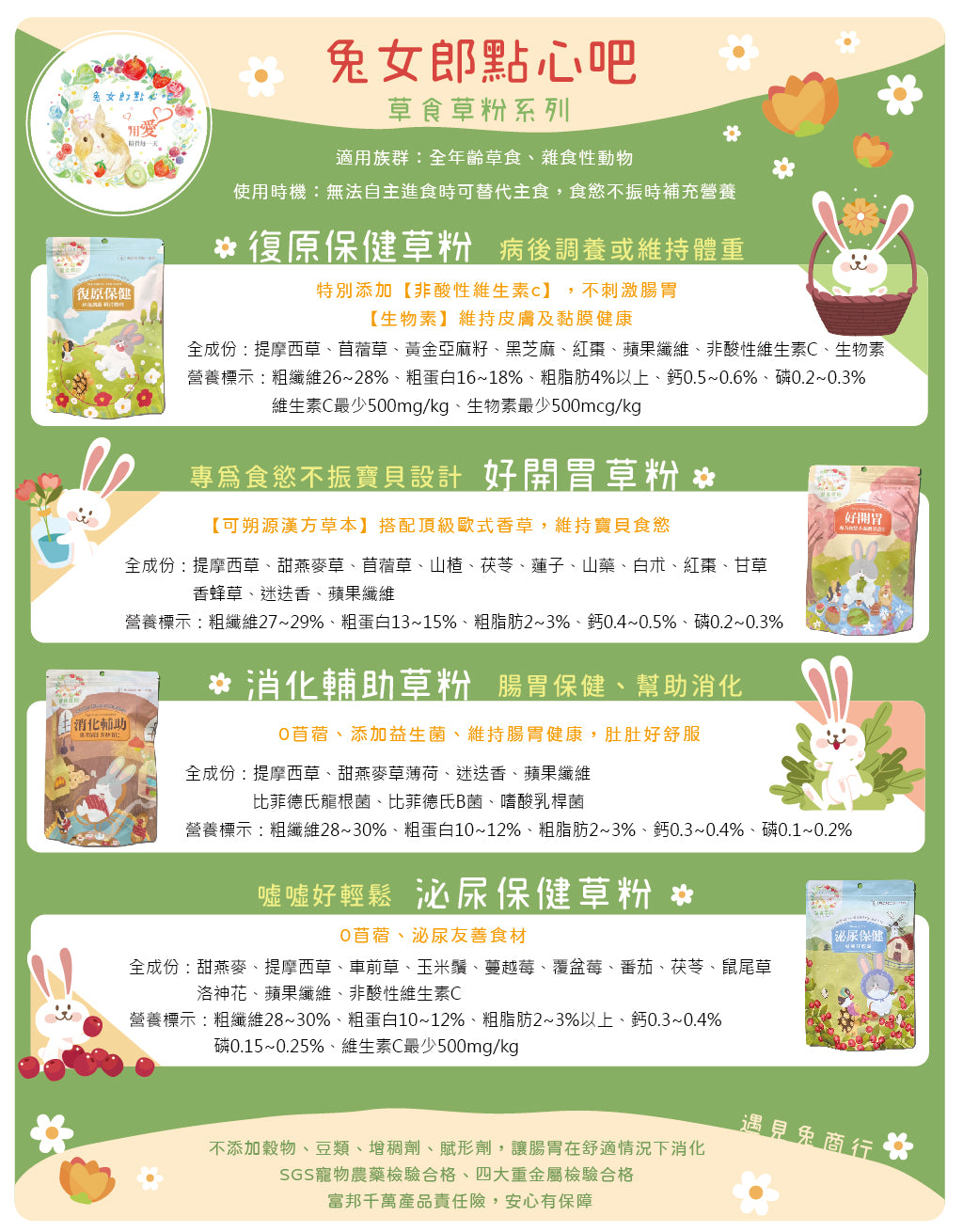 全年齡兔子、天竺鼠及其他草食、雜食動物