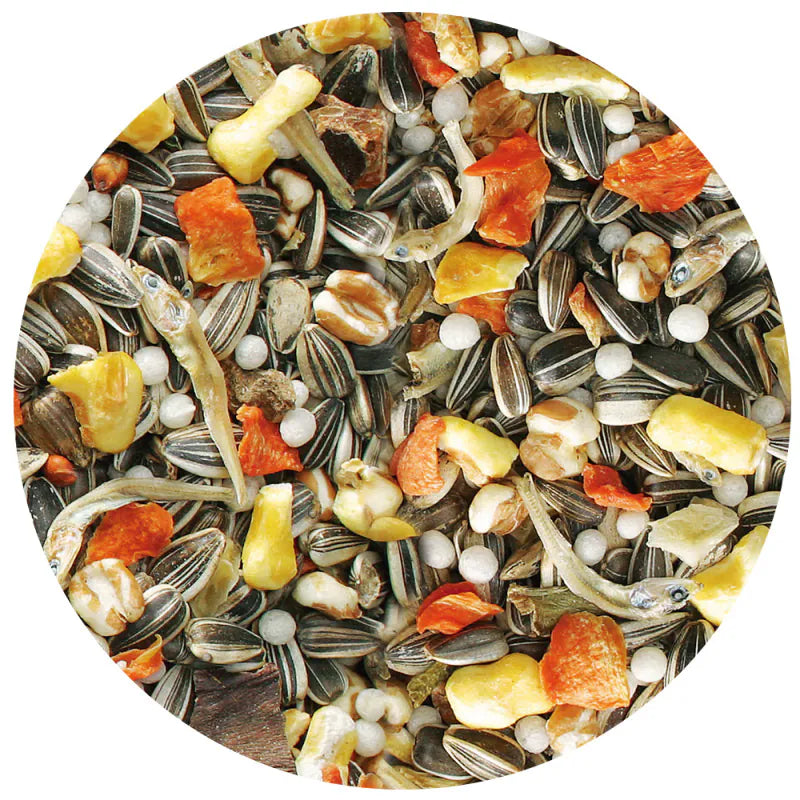 除了小葵花子外,還有玉米、豆腐、蔬菜等穀物。