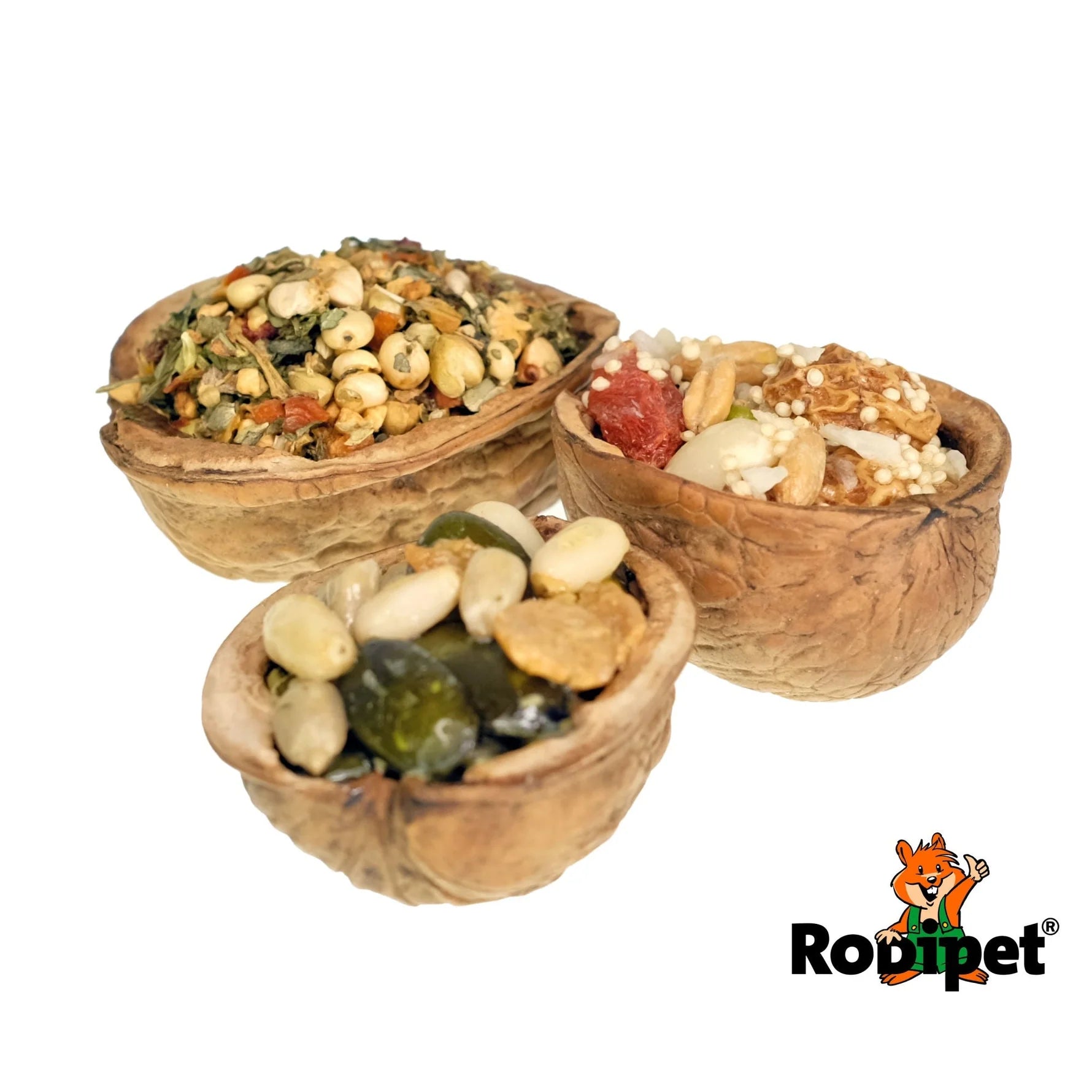 最優質、精緻的成分和愛心的加工使Rodipet®️核桃TRiO成為您的寵物非常特別的享受。 這些誘人的香味組合物的堅硬咬合和獨特的味道使其成為所有啮齒動物的啃食樂趣。